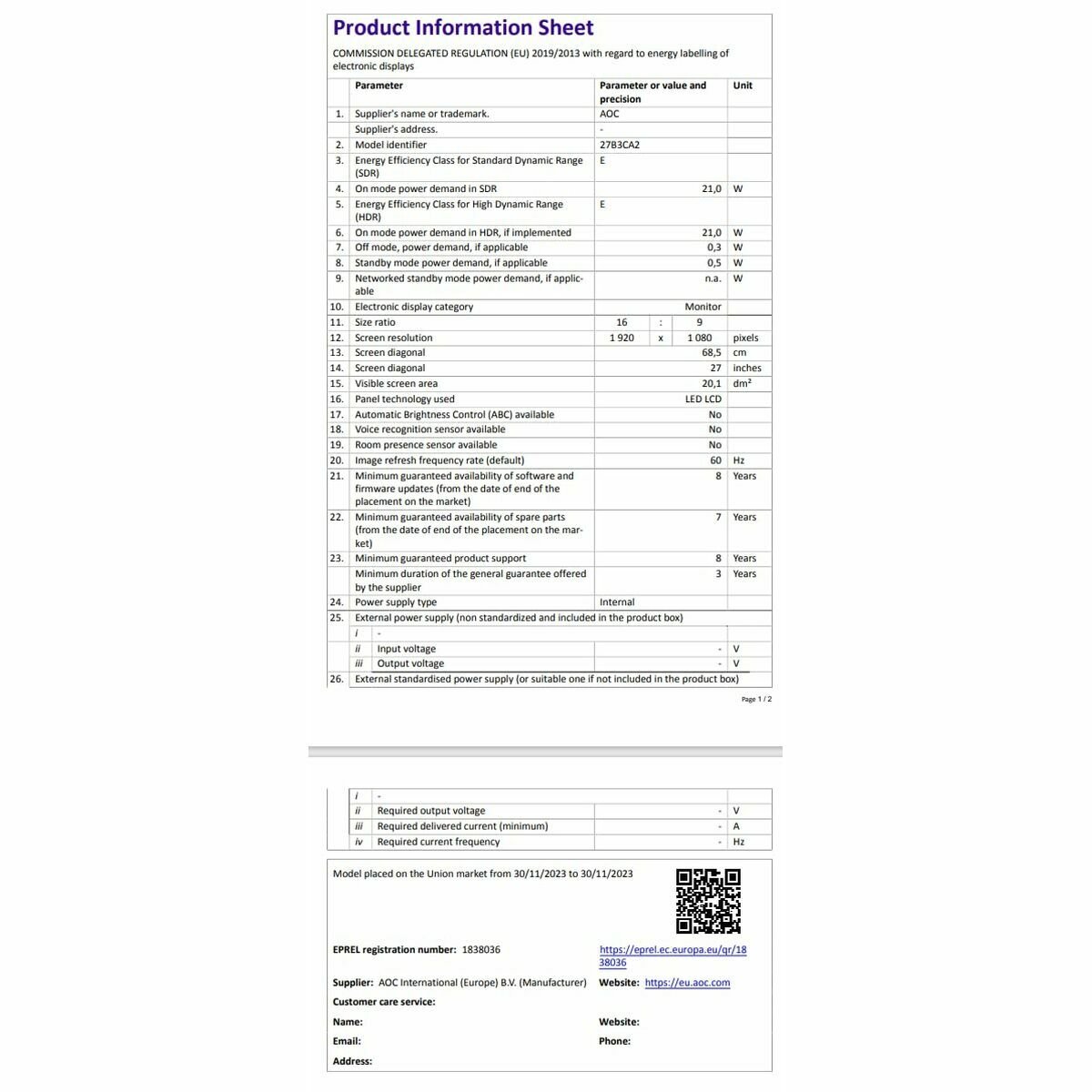 Wenn Sie auf der Suche nach trendigen Neuheiten auf dem Markt sind, präsentieren wir Ihnen Gaming-Monitor AOC 27B3CA2 Full HD 27″!
