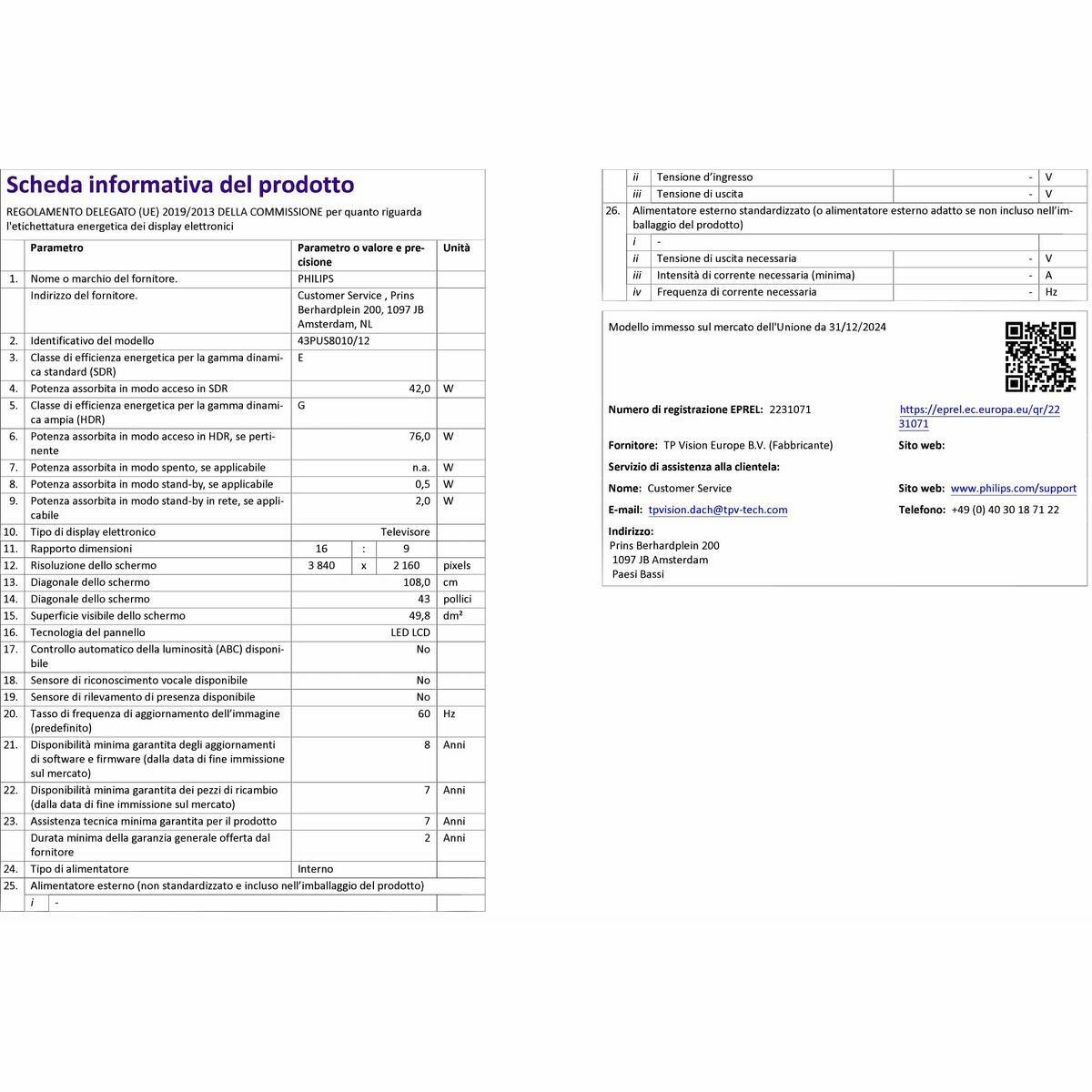 • Bildschirm: 43″