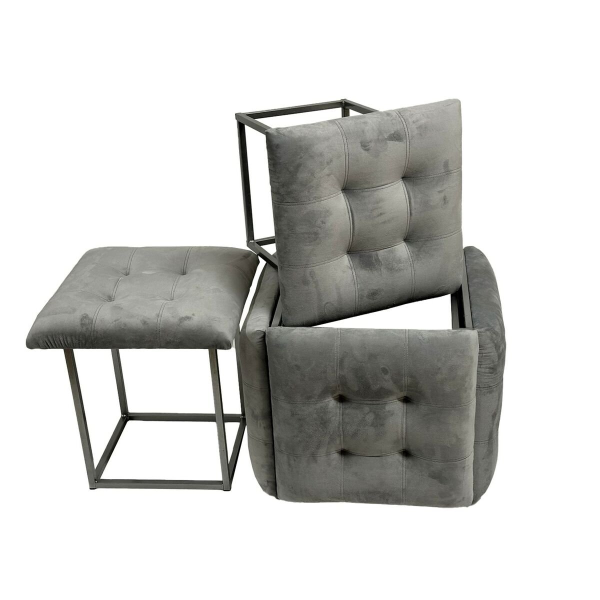 Stuhl-Set GO GIFT Transformer Grau Samt Stahl 50 x 50 x 50 cm Puff 5 in 1 5 Stück